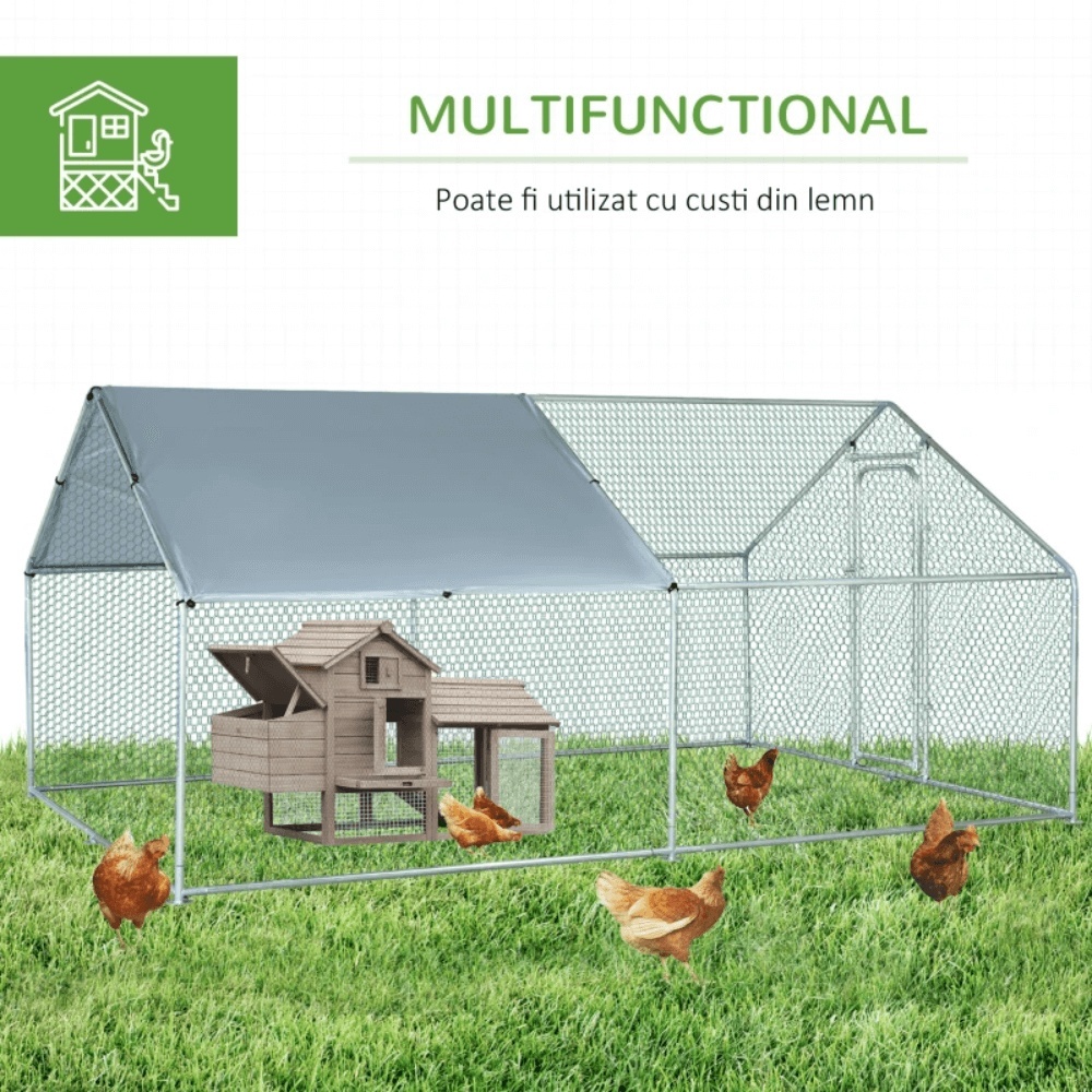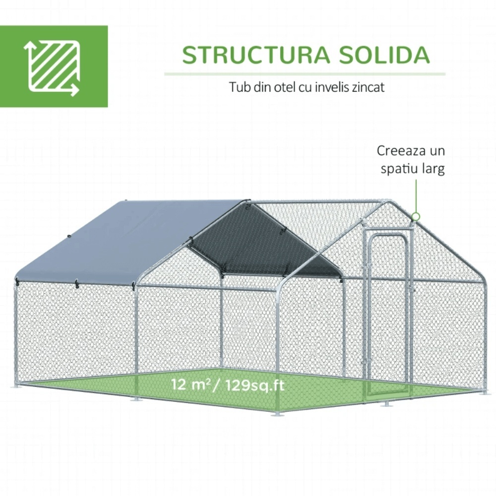 Cotet de gaini, pasari, pentru exterior 4 x 3 x 2 metri, otel galvanizat