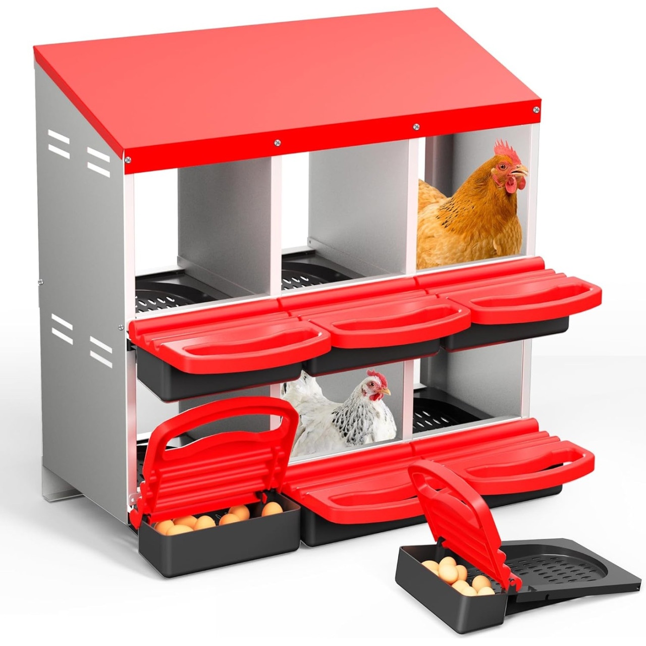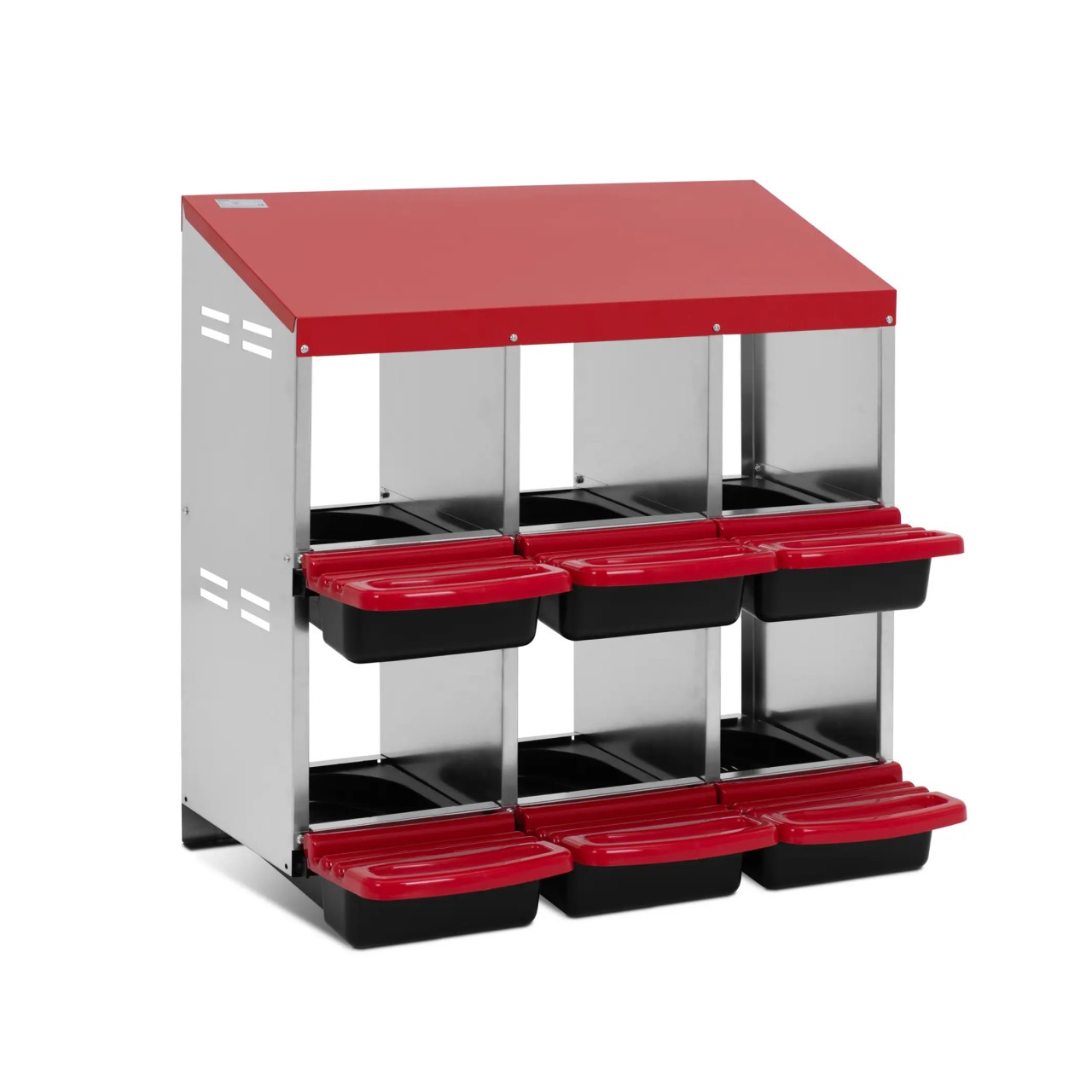 Cuibarul cu 6 compartimente este soluția ideală pentru crescătoriile de păsări care doresc o colectare eficientă, curată și sigură a ouălor. Fabricat din otel galvanizat de inalta calitate, acest cuibar este rezistent la coroziune, uzură și intemperii, fiind potrivit atât pentru exploatații mici, cât și pentru ferme de dimensiuni medii.