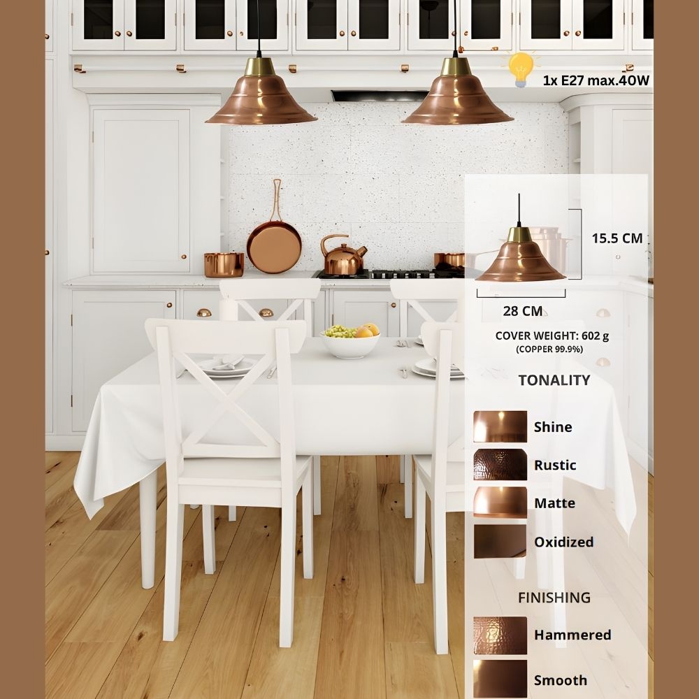 CS04CO este o lustra vintage din cupru, cu finisaj mat, creata pentru spatii care vor un accent elegant, curat si bine ales. Este genul de piesa care îti schimba atmosfera fara sa aglomereze. Lumina devine mai calda, decorul pare mai coerent, iar spatiul capata instant o nota de finete.