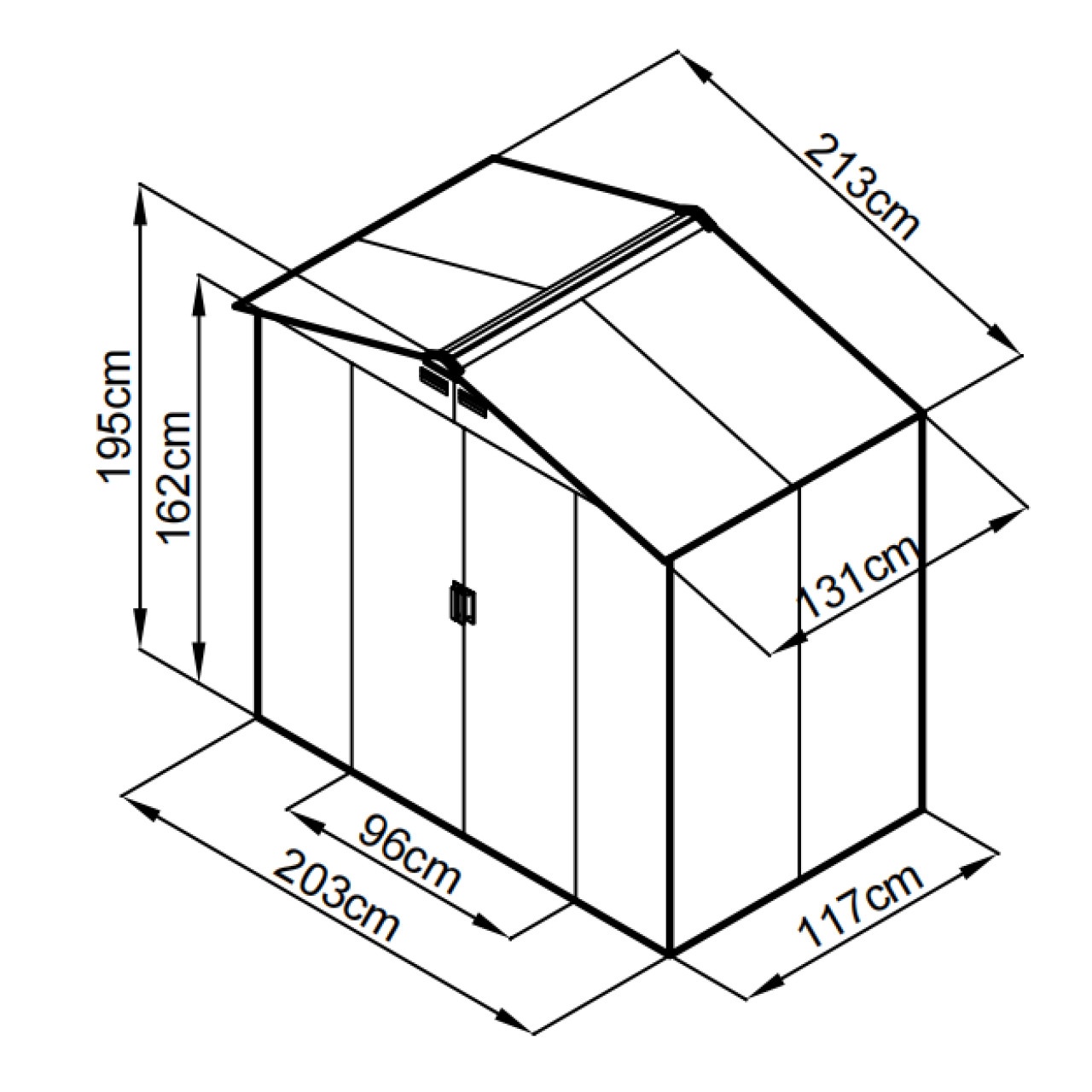 Accesul este facil prin usa culisanta dubla de 96x162 cm, ideala pentru introducerea obiectelor voluminoase sau a bicicletelor. Montajul este rapid, iar magazia ofera un spatiu practic si sigur pentru organizarea eficienta a obiectelor din gradina sau curte.