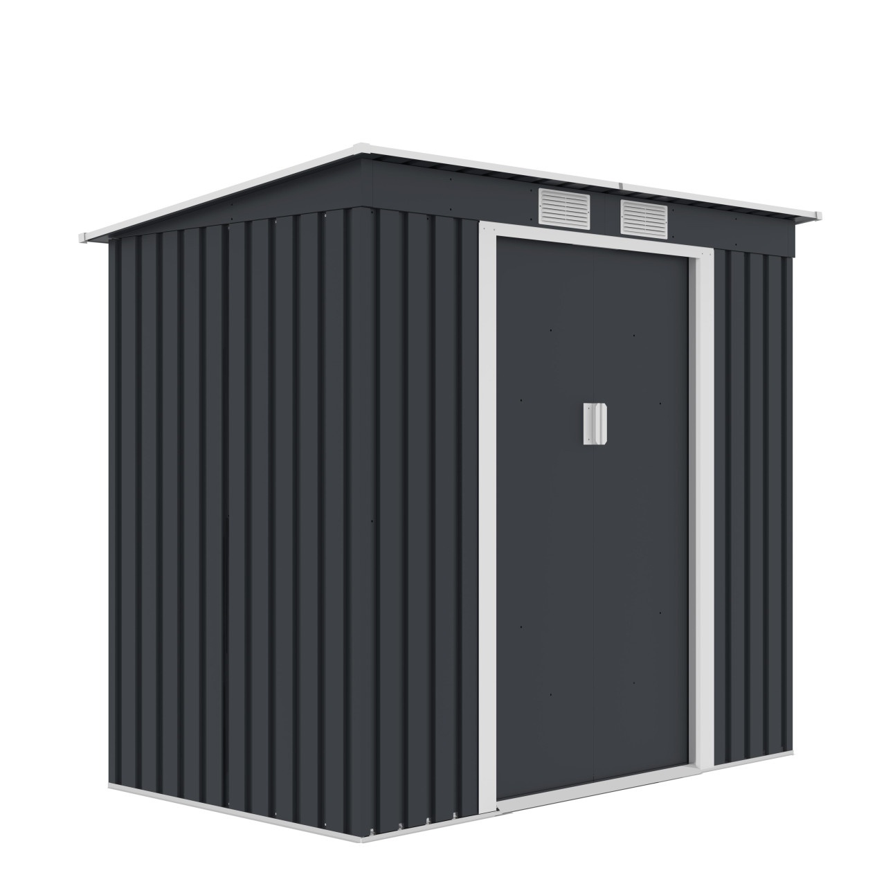 Magazie metalica pentru gradina 261x181x176 cm, gri, usa culisanta dubla