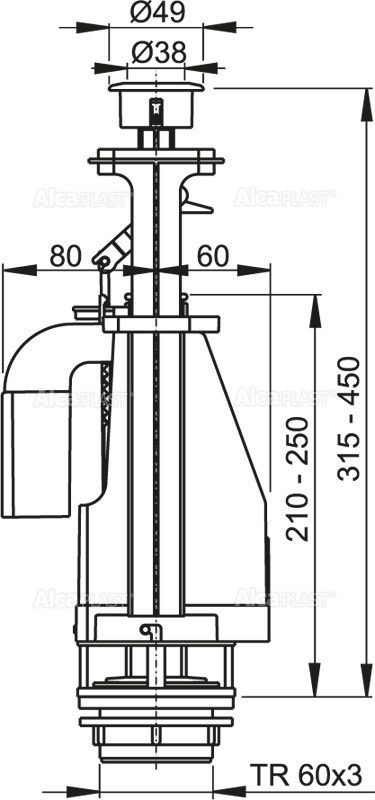 Mecanism de clatire WC Alcaplast cu buton dubla actionare, A08A