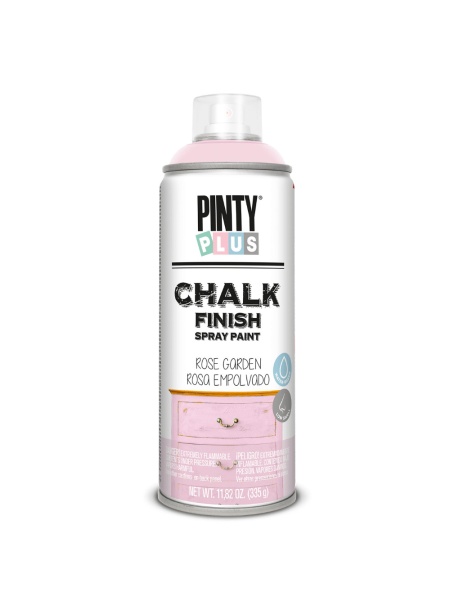- Spray cu vopsea pe baza de apa, Pinty Plus Chalk Paint da un aspect antichizat, de invechit, oricarui suport pe care il aplicati fie el din lemn, carton, metal, plastic, sticla, melamina, panza de pictat si chiar polistiren (polistirenul nu este afectat, nu se deformeaza sub actiunea acestei vopsele). Culori pastelate, aspect final mat, catifelat la atingere. Culoare: CK793 ROSE GARDEN.