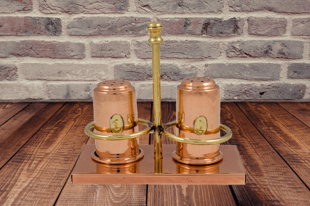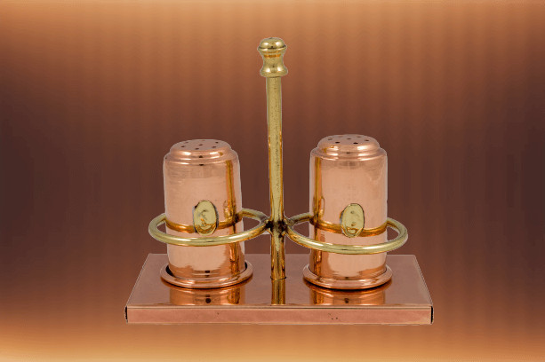 - Setul din cupru pentru sare si piper cu suport este un set perfect cu ajutorul caruia puteti savura si mai mult mancarea dvs. intr-un stil excelent. Setul este compus din 2 solnite (agitatoare) din cupru si din suportul de cupru cu maner din bronz pentru un transfer usor.