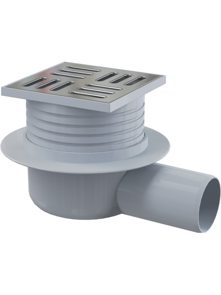 - Sifon pardoseală 105×105/50 mm ieşire laterală, grătar din oţel inoxidabil, sistem de reţinere a mirosurilor umed APV26 alcadrain