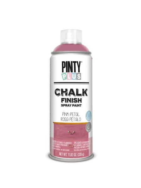 - Spray cu vopsea pe baza de apa, Pinty Plus Chalk Paint da un aspect antichizat, de invechit, oricarui suport pe care il aplicati fie el din lemn, carton, metal, plastic, sticla, melamina, panza de pictat si chiar polistiren (polistirenul nu este afectat, nu se deformeaza sub actiunea acestei vopsele). Culori pastelate, aspect final mat, catifelat la atingere. Culoare: CK792 PINK PETALS.