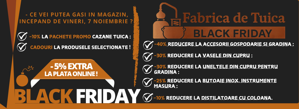 Fondată în 2012, Fabrica De Țuică® este primul și cel mai mare magazin online din România dedicat echipamentelor din cupru și produselor pentru distilare, gastronomie și grădinărit. Cu peste 50.000 de clienți, brandul a devenit un reper național pentru cei care apreciază calitatea autentică și soluțiile complete pentru producție și preparare.